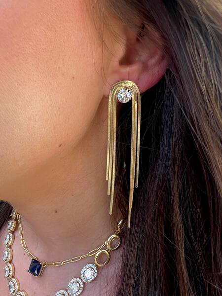 Chain Earring- 3 CZ station Chain Stainless Steel 14K Gold