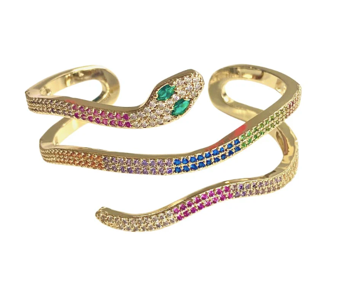 18k Gold Plated 7" Adjustable Cuff with Multicolored CZ Detail