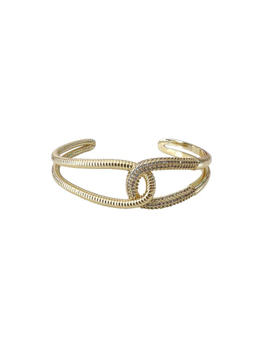18K Gold Plated 7" adjustable cuff bracelet with CZ detail.