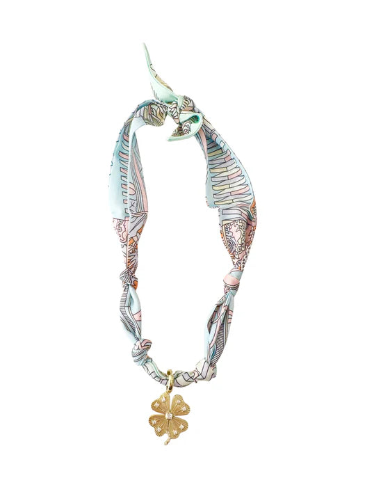 Adjustable Satin Scarf Necklace with Interchangeable 18k Gold Plated Charm.