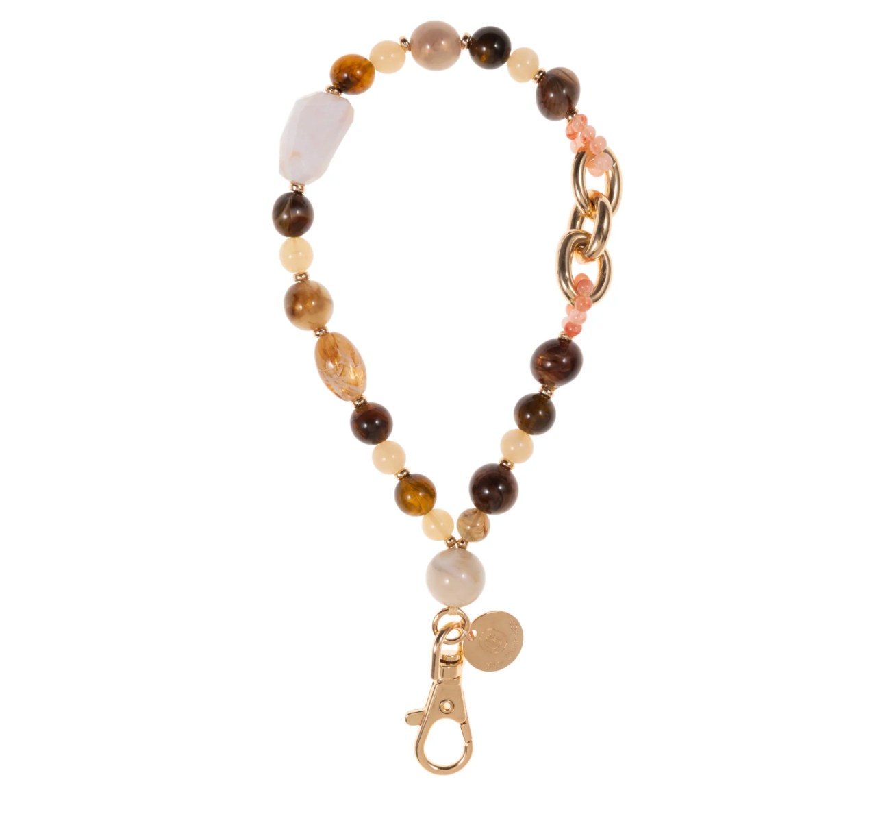 Phone Wristlet featuring Assorted Acrylic/Glass/Stone Beads with 14K Gold Plated Links. Turn your phone into a wearable accessory that keeps you hands-free... think of it as a bracelet for your cell phone!