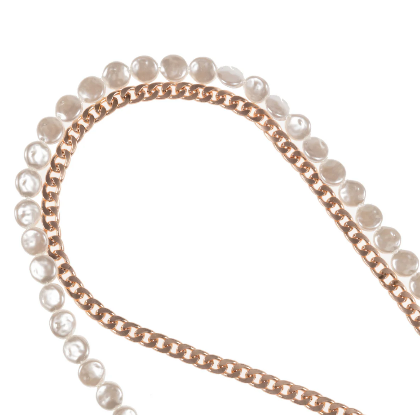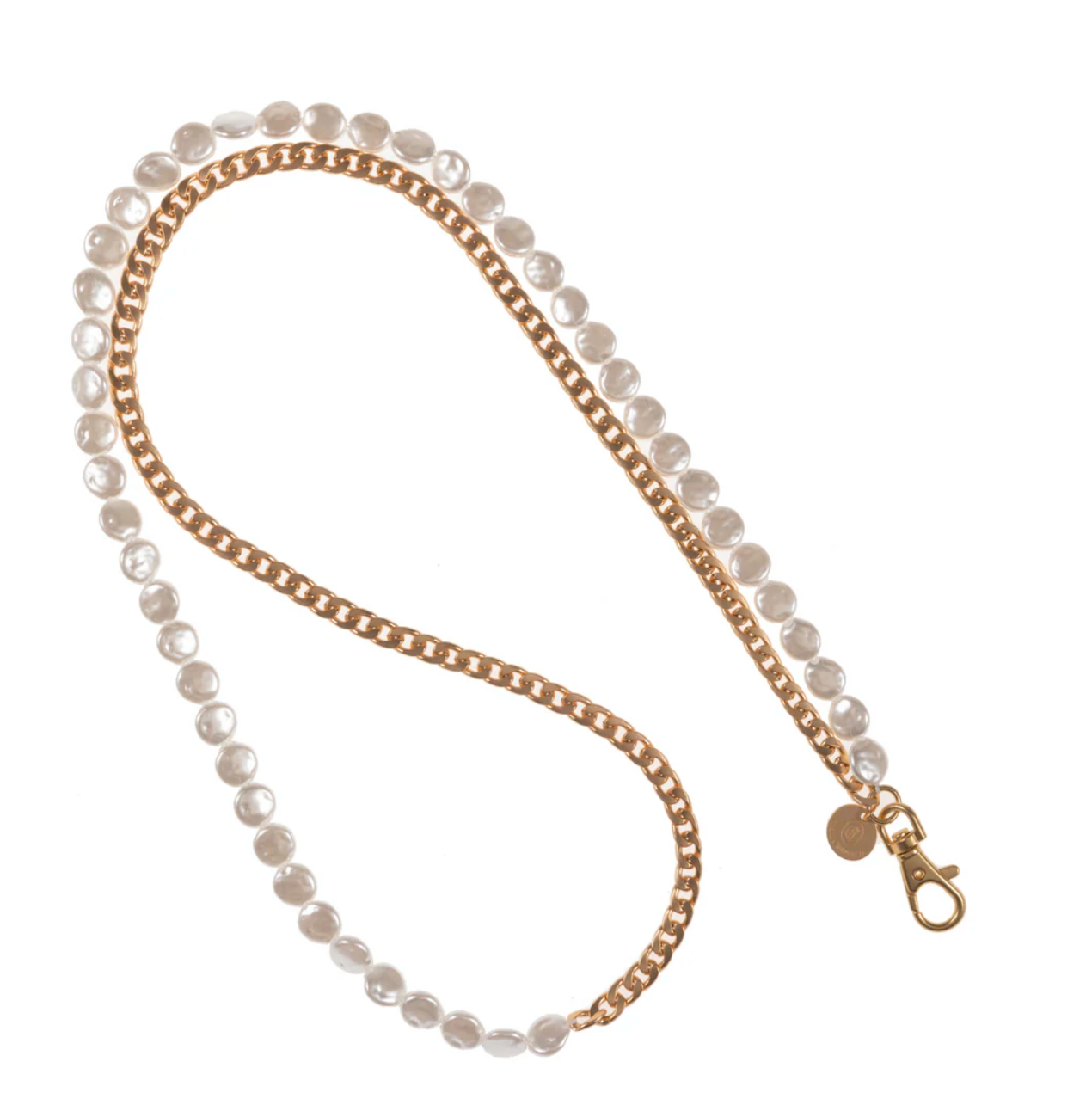 Half Pearl Half 18k Gold Plated Cuban Link Chain. With Phone Chains this chic, there has never been a more convenient, lightweight, and fashionable way to keep your phone with you; hands-free.