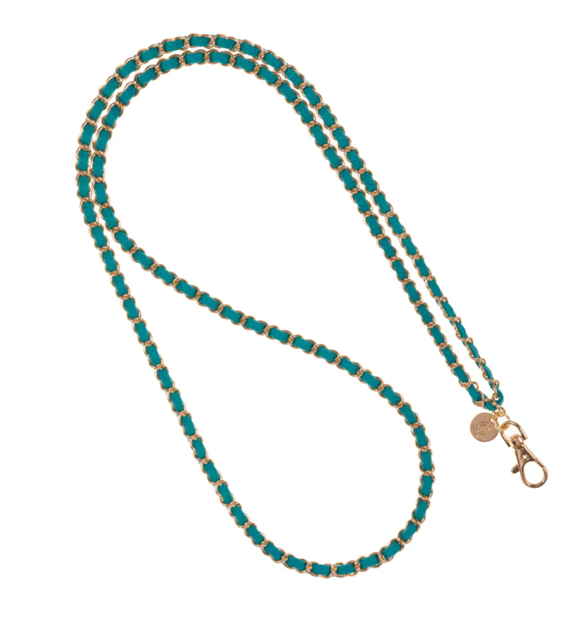 Gold Plated Crossbody Phone Chain with 100% Emerald Green Suede Woven Throughout. With Phone Chains this chic, there has never been a more convenient, lightweight, and fashionable way to keep your phone with you; hands-free.