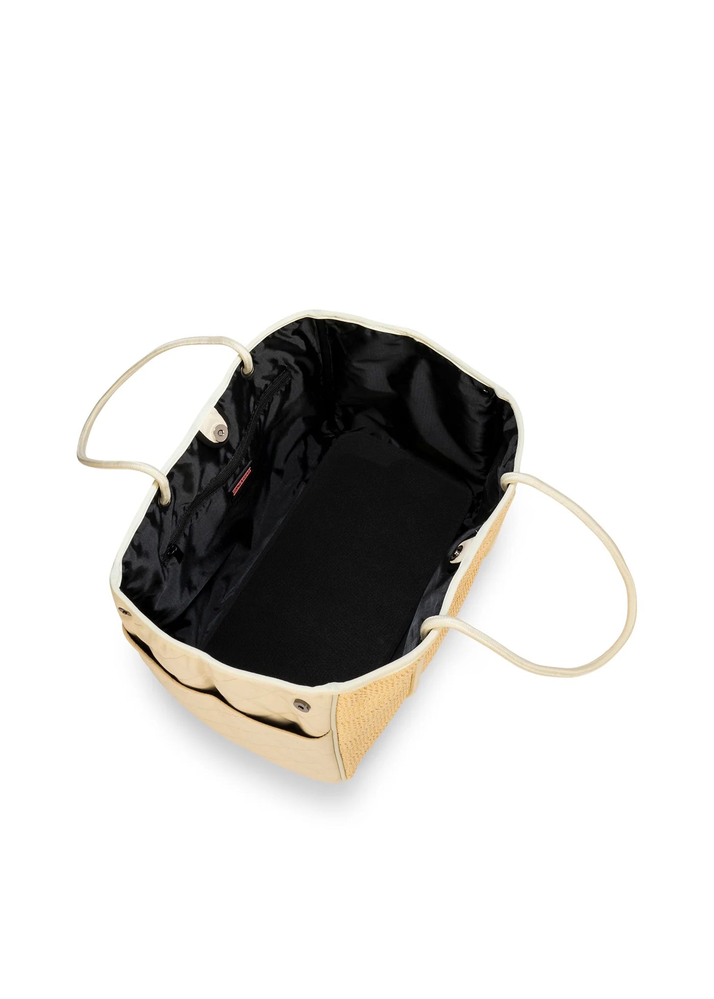 - Vanilla quilted vegan leather sides with raffia center.