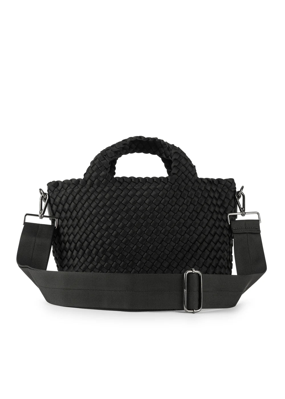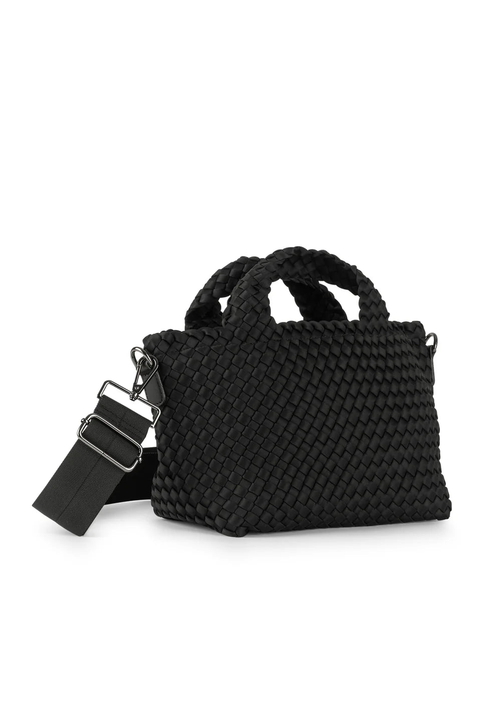 - Small size woven tote featuring zip top closure, lined interior with 1 slip and 1 zip pocket.