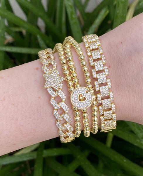 18k Gold plated 7" adjustable bracelet with CZ detail and single charm.