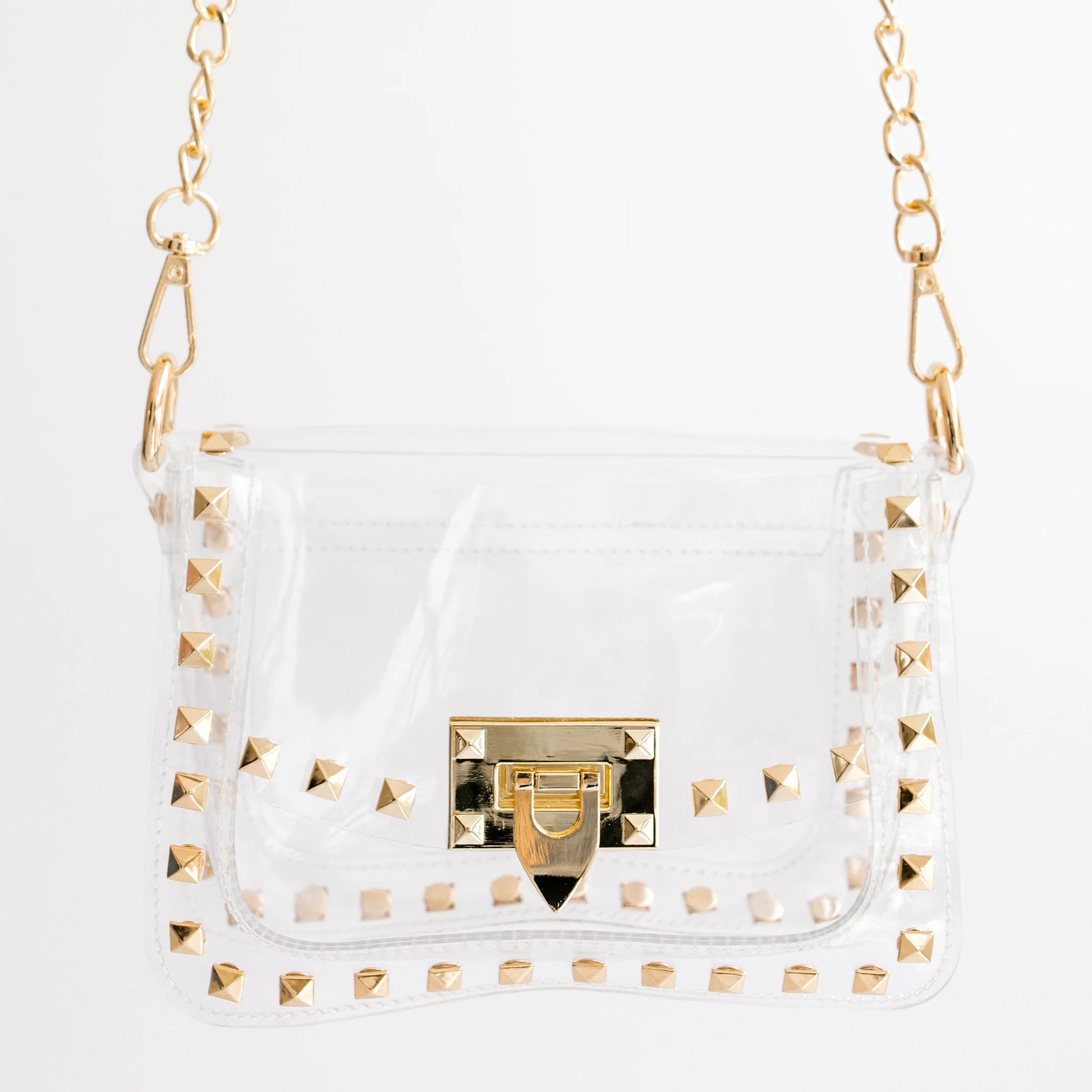 The Jackie is NCAA and NFL compliant and the ideal size to hold your wallet, phone, keys, lip gloss and a few other small items.