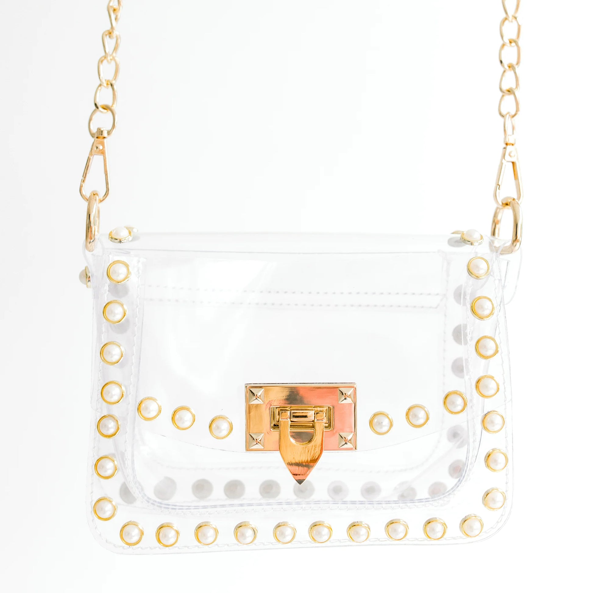 The Jackie is NCAA and NFL compliant and the ideal size to hold your wallet, phone, keys, lip gloss and a few other small items.