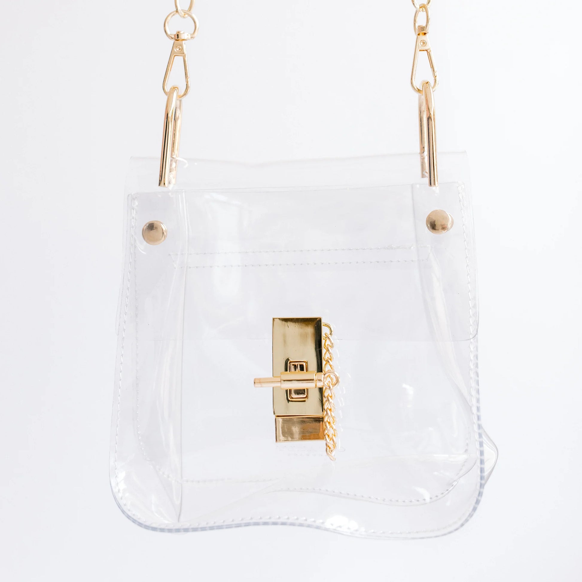 • Gold Hardware, Chain Strap and Lock Detail