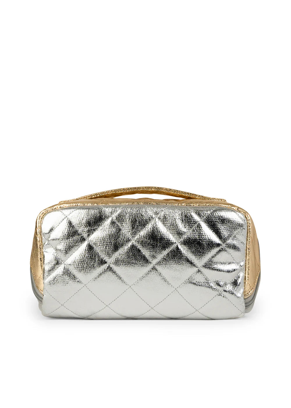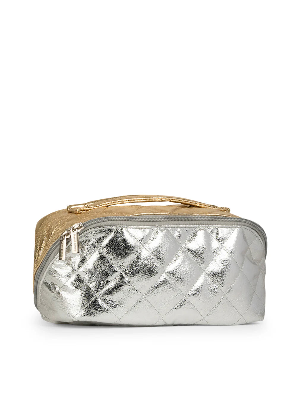 - Puffer case with top and bottom storage with multiple interior pockets and top handle