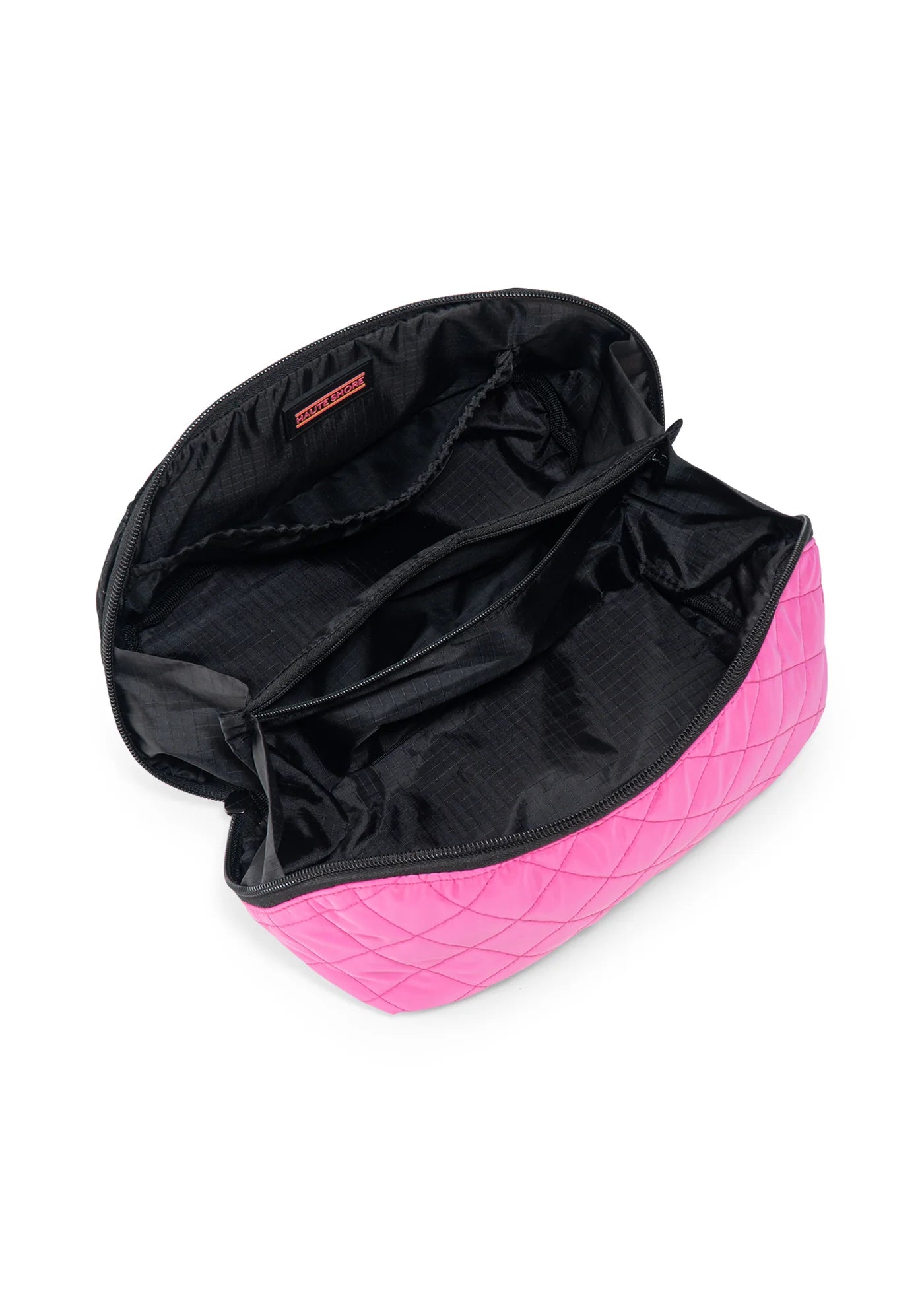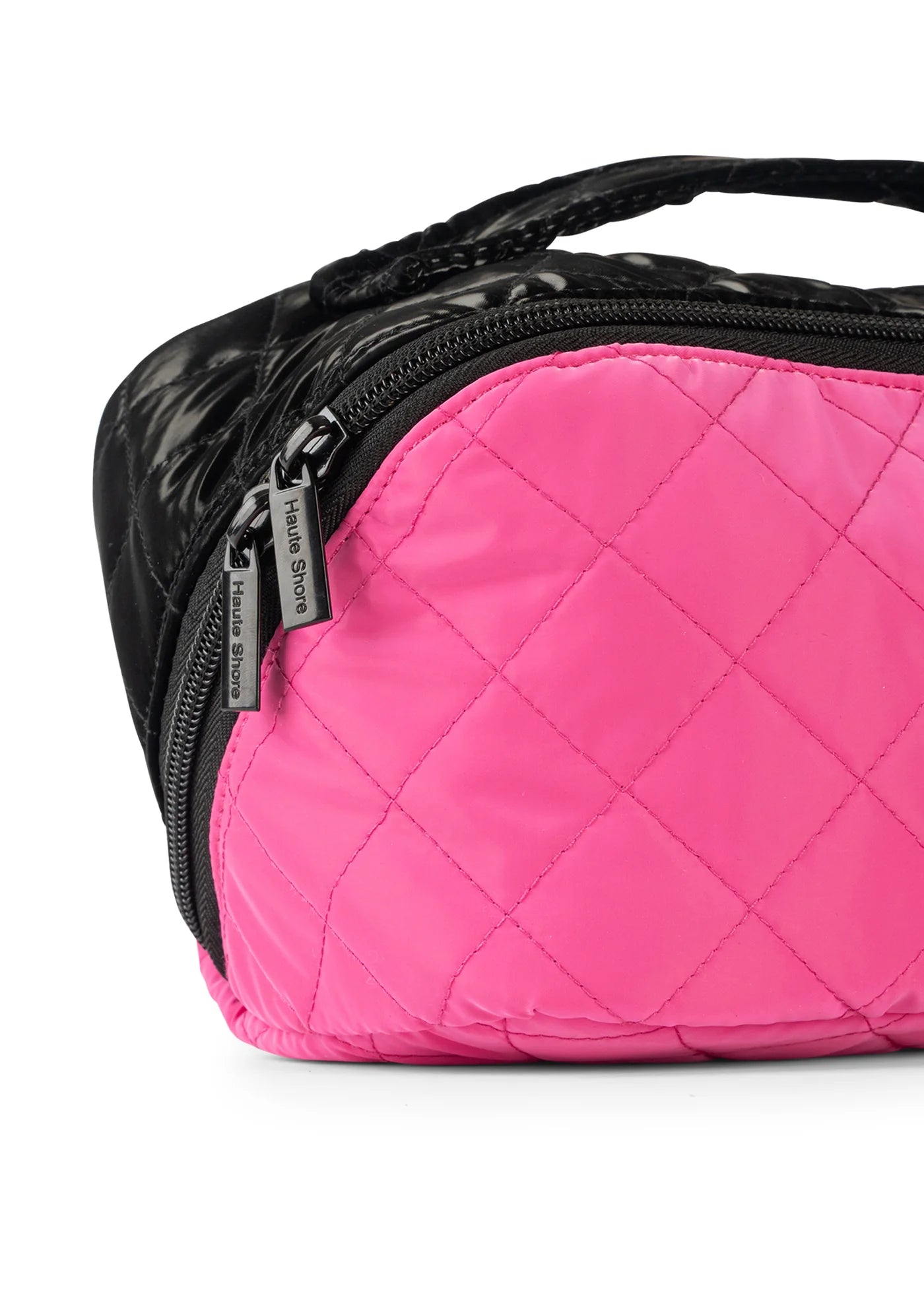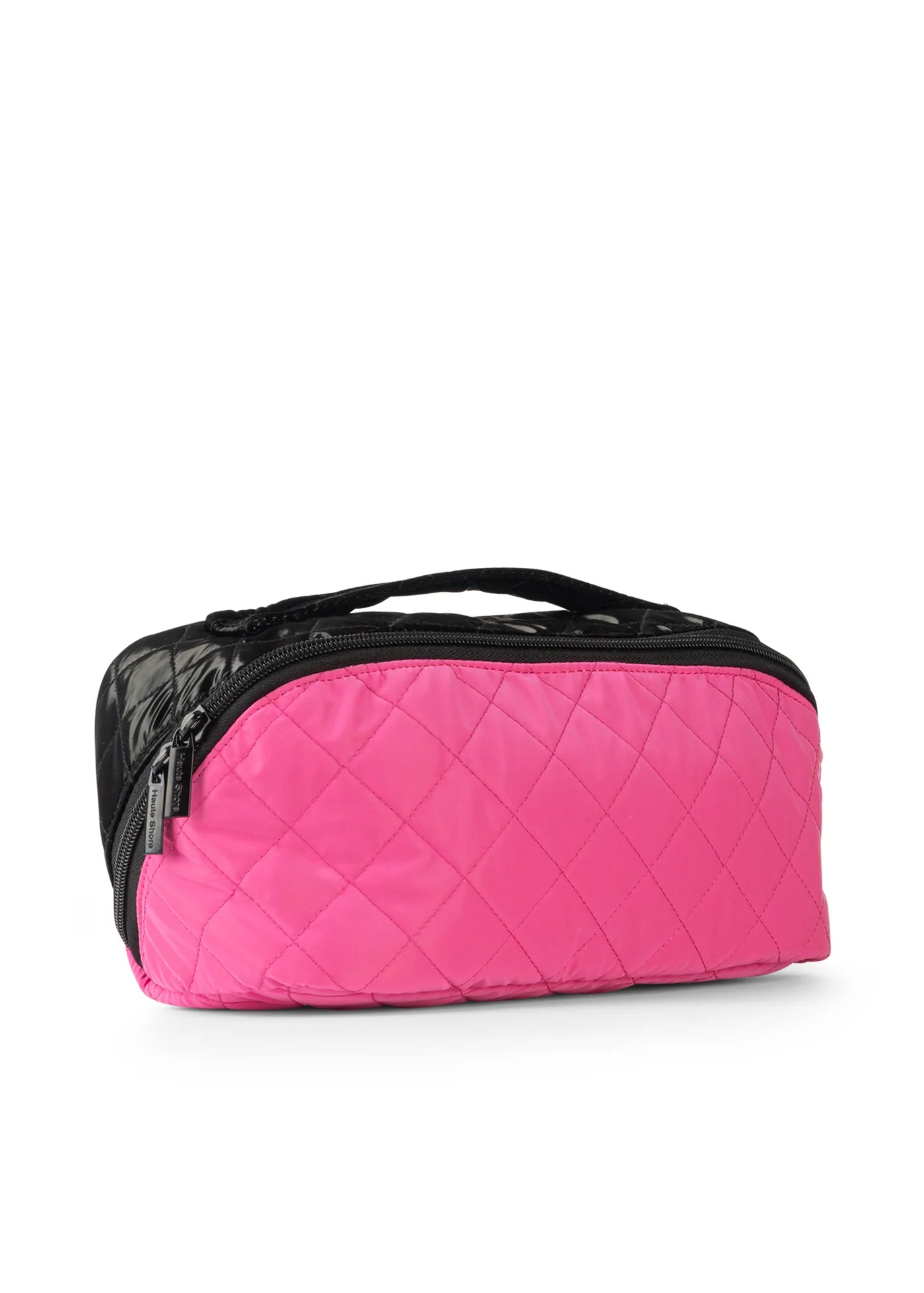 - Puffer case with top and bottom storage with multiple interior pockets and top handle