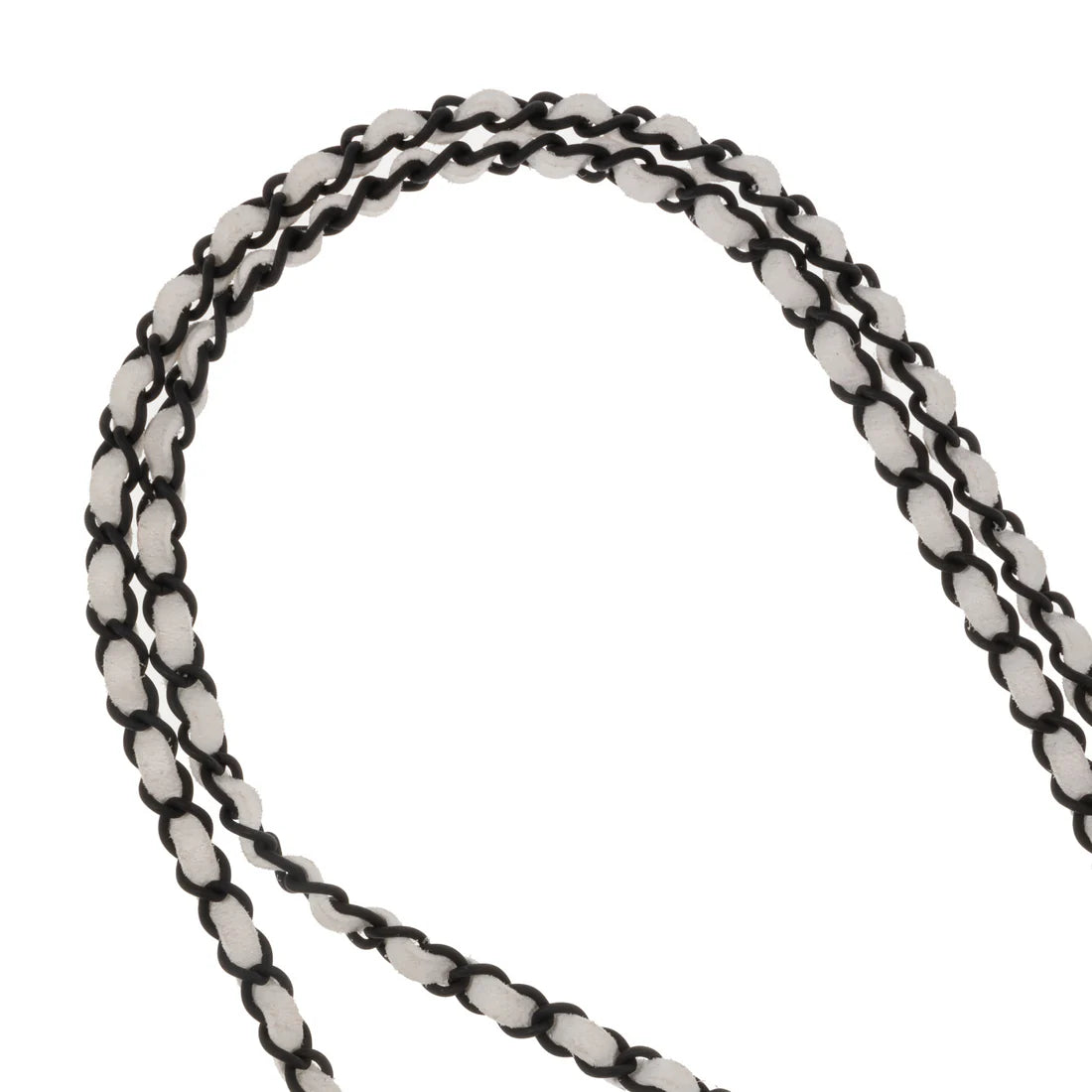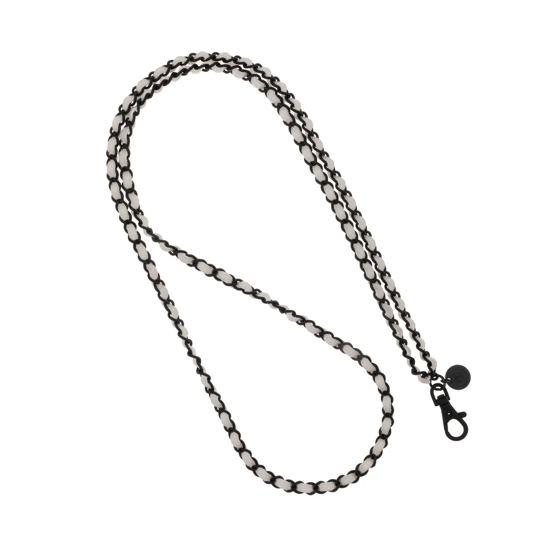 Matte Black Plated Crossbody Phone Chain with 100% White Suede Woven Throughout. With Phone Chains this chic, there has never been a more convenient, lightweight, and fashionable way to keep your phone with you; hands-free.