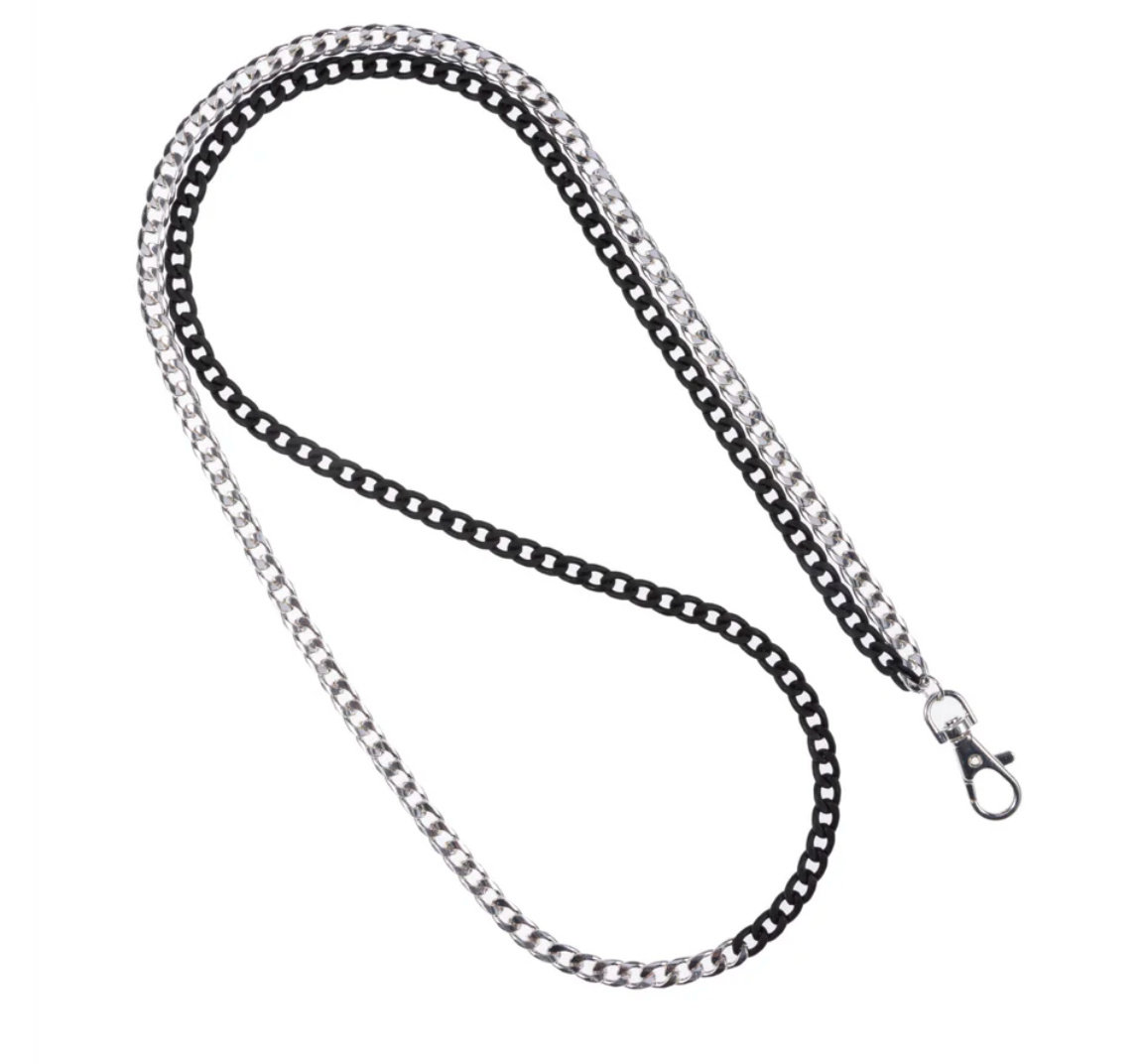 Cuban Link Chain composed of Silver and Matte Black links. With Phone Chains this chic, there has never been a more convenient, lightweight, and fashionable way to keep your phone with you; hands-free.