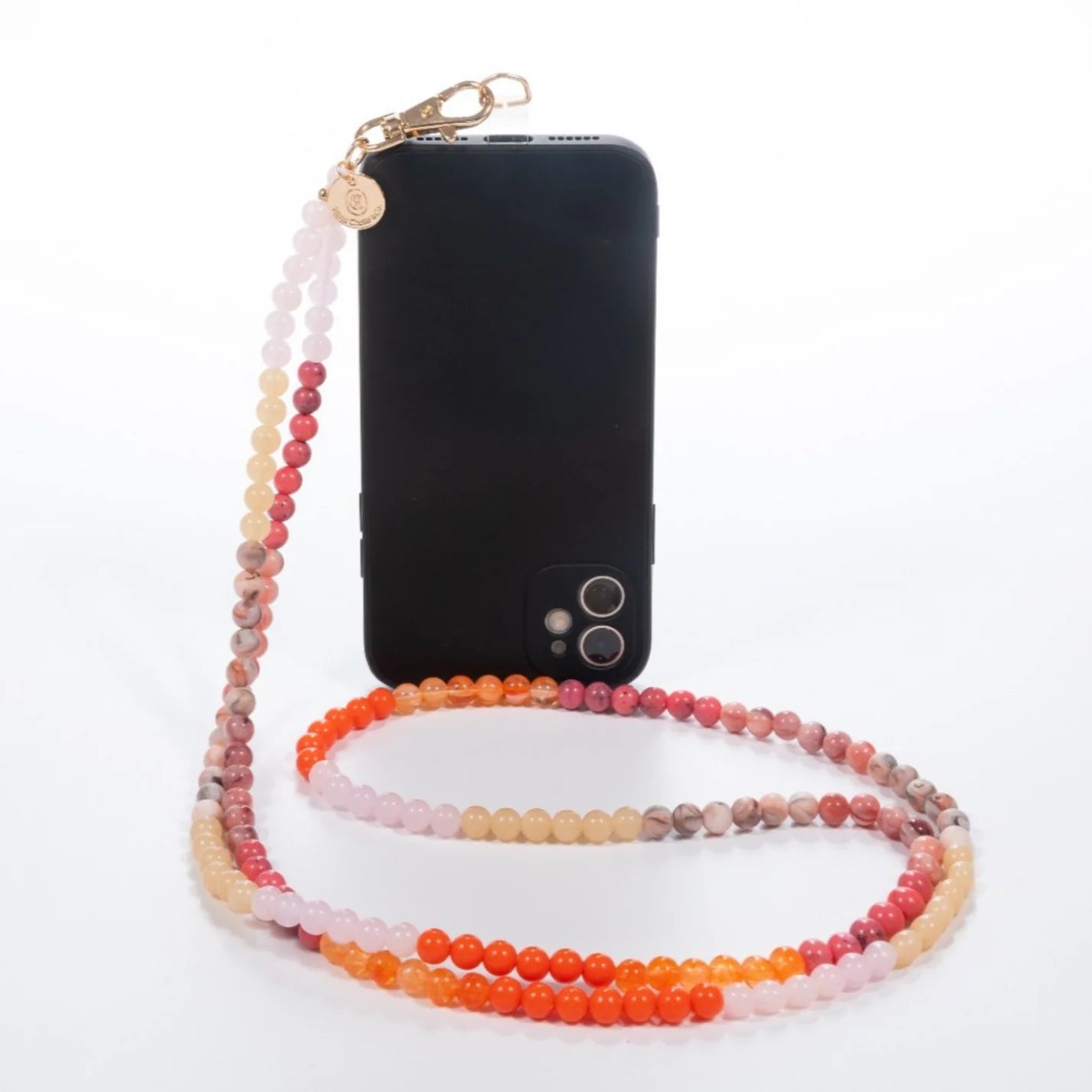 Assorted Orange Acrylic Beads in Ombre Pattern Crossbody Phone Chain. With Phone Chains this chic, there has never been a more convenient, lightweight, and fashionable way to keep your phone with you; hands-free.